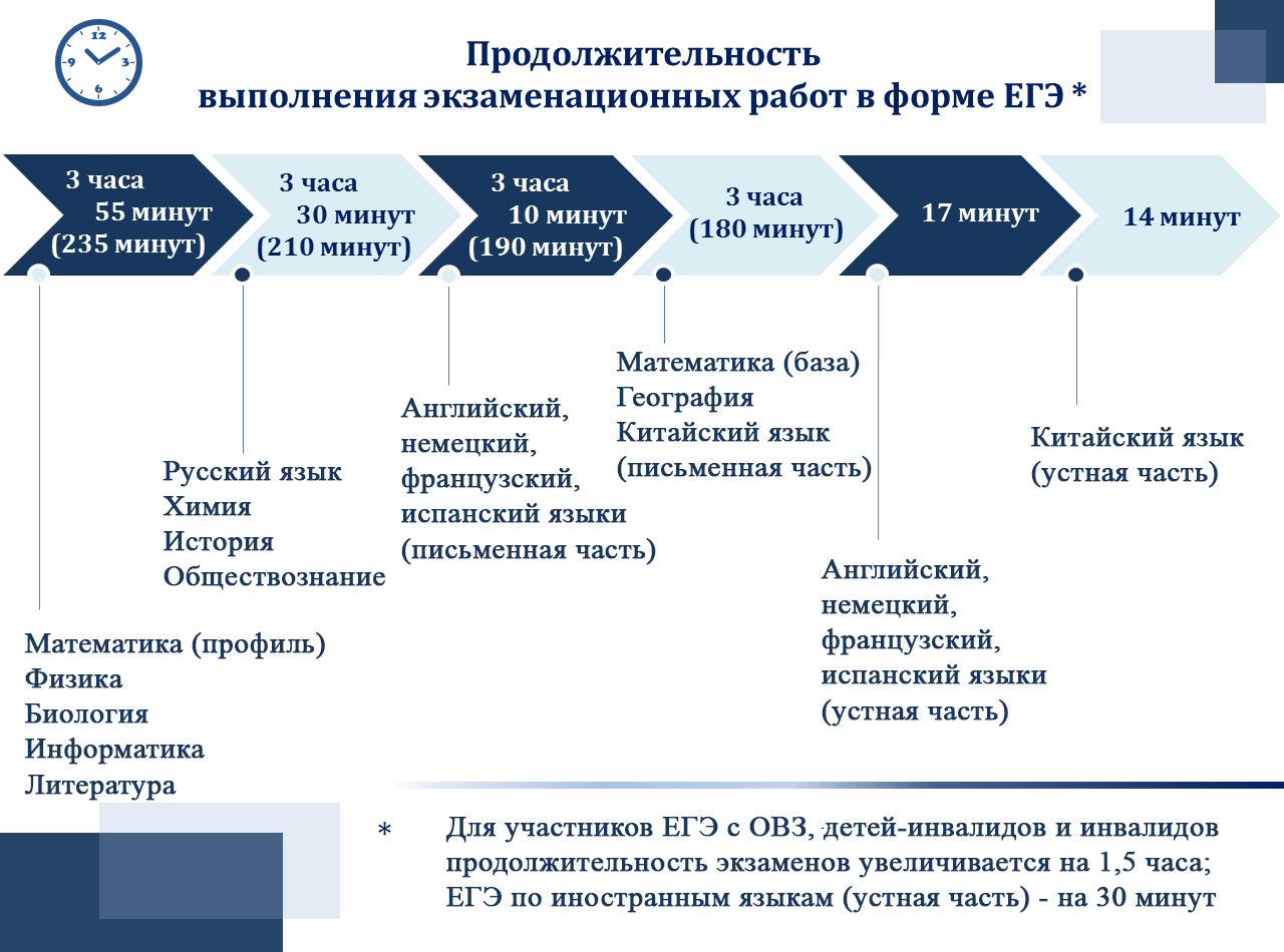 Продолжительность выполнения экзаменационных работ в 9 классе