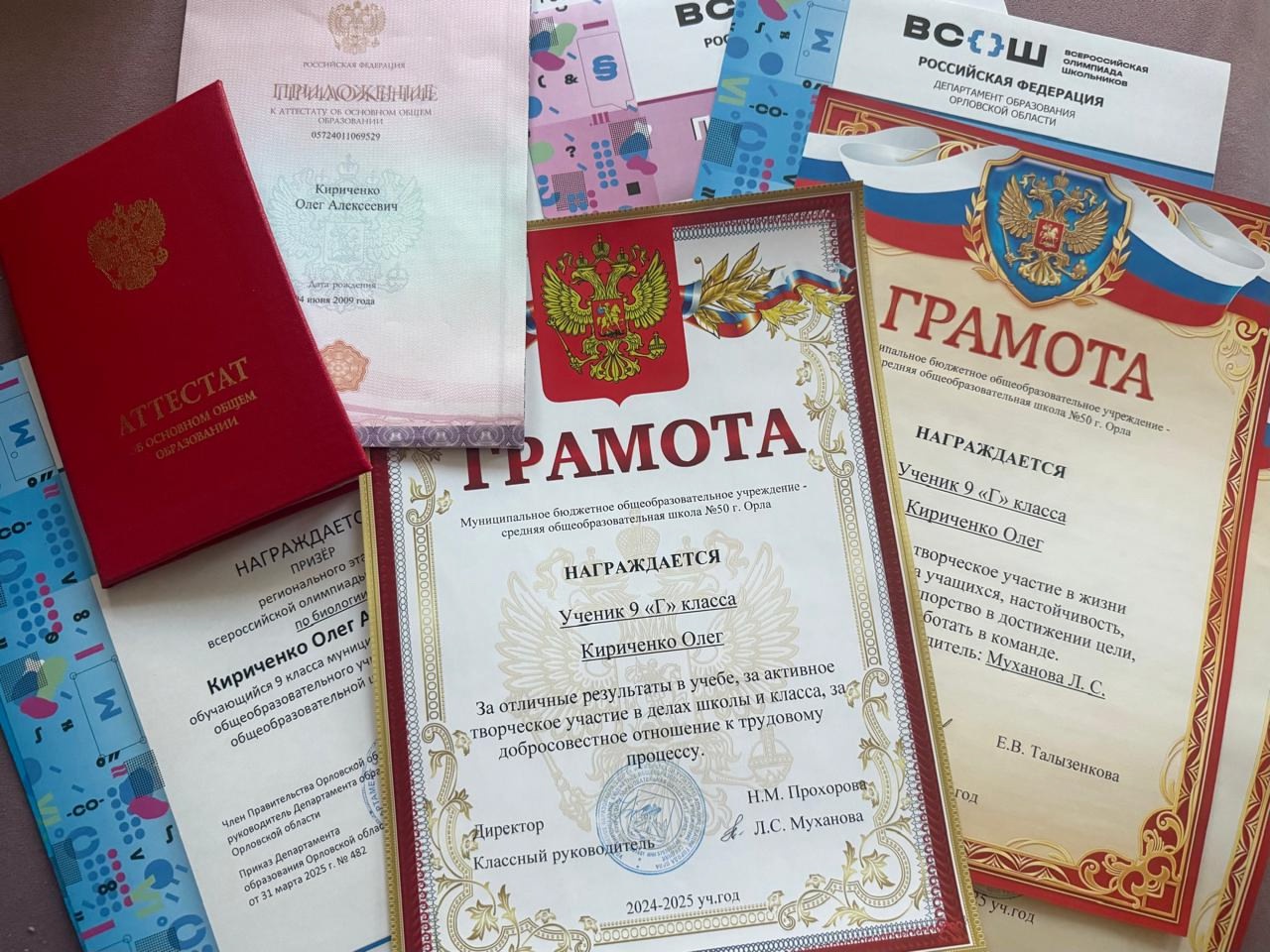 В орловской школе № 50 учится юноша, который уже сейчас демонстрирует впечатляющие академические достижения. Олег Кириченко – многократный призёр муниципальных этапов Всероссийской олимпиады школьников (ВсОШ) по математике, физике, географии, биологии, химии и обществознанию.