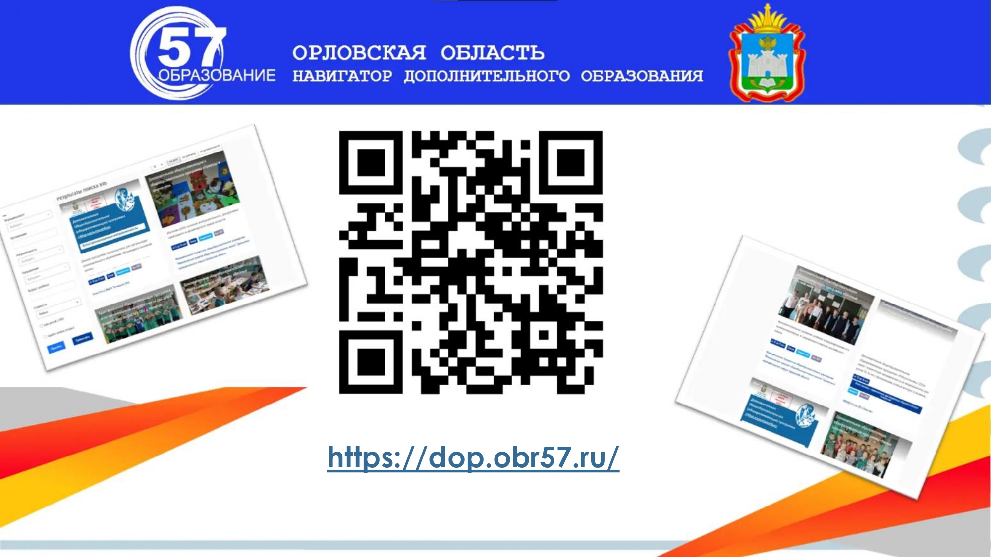 Запись на кружки и мероприятия осуществляется по ссылке https://dop.obr57.ru/