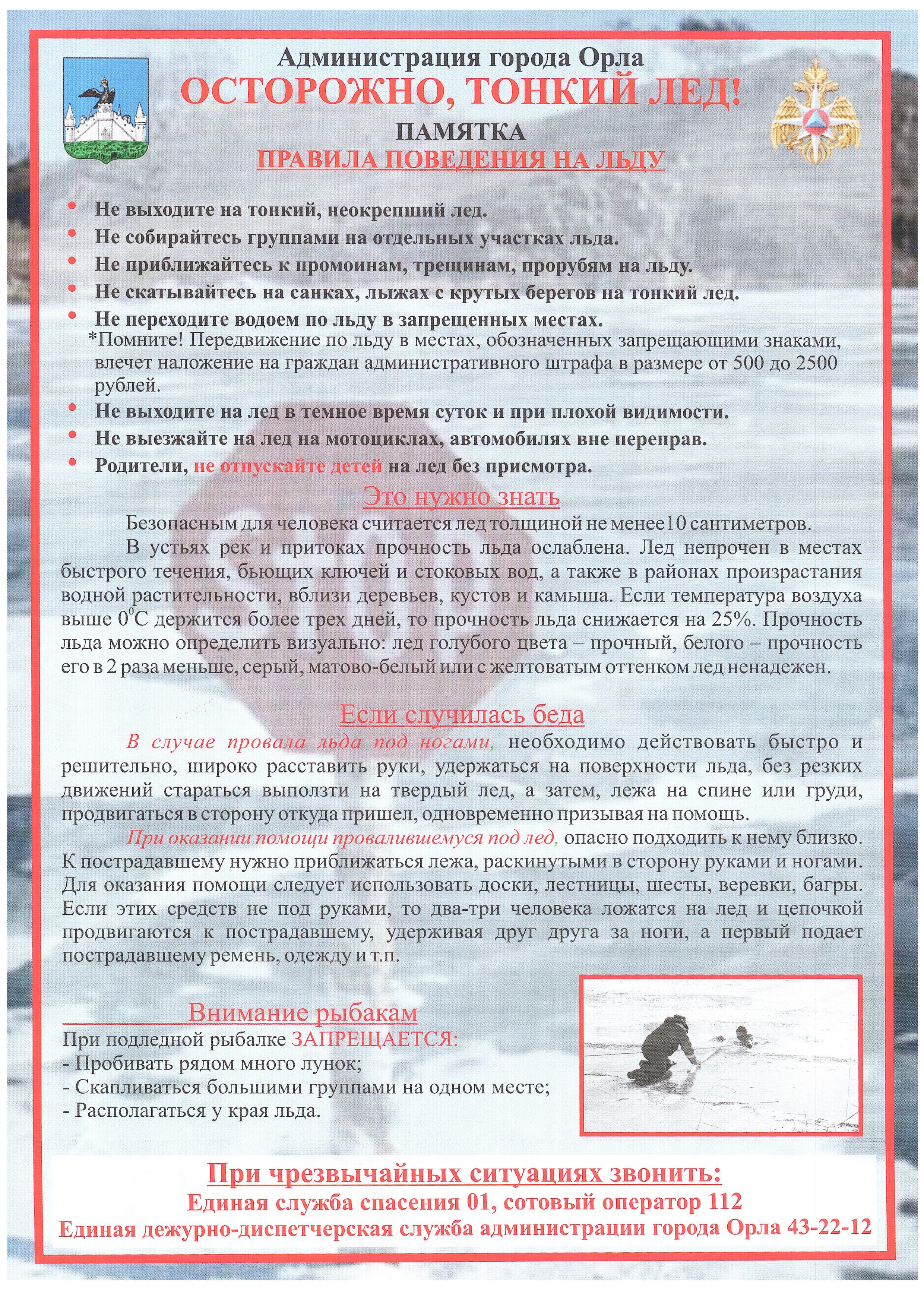 Памятка "Осторожно: тонкий лед"